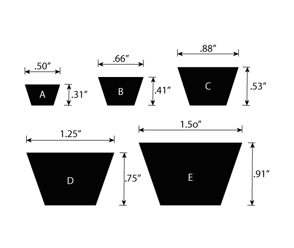 Ofrecemos un amplio rango de modelos y longitudes. Como las "A" o "3V" para trabajos livianos, las "B" o "5V" para exigencias moderadas, las "C" u "8V" para trabajos pesados y las "D" para altísimas exigencias.