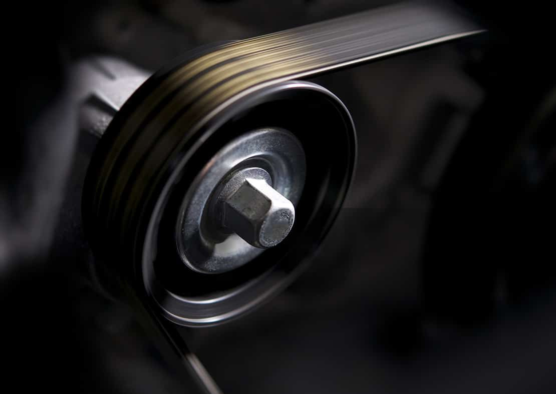 Las correas trapezoidales transmiten potencia desde un motor a las poleas para accionar muchos tipos de componentes, incluidos compresores, ventiladores, bombas de agua.
